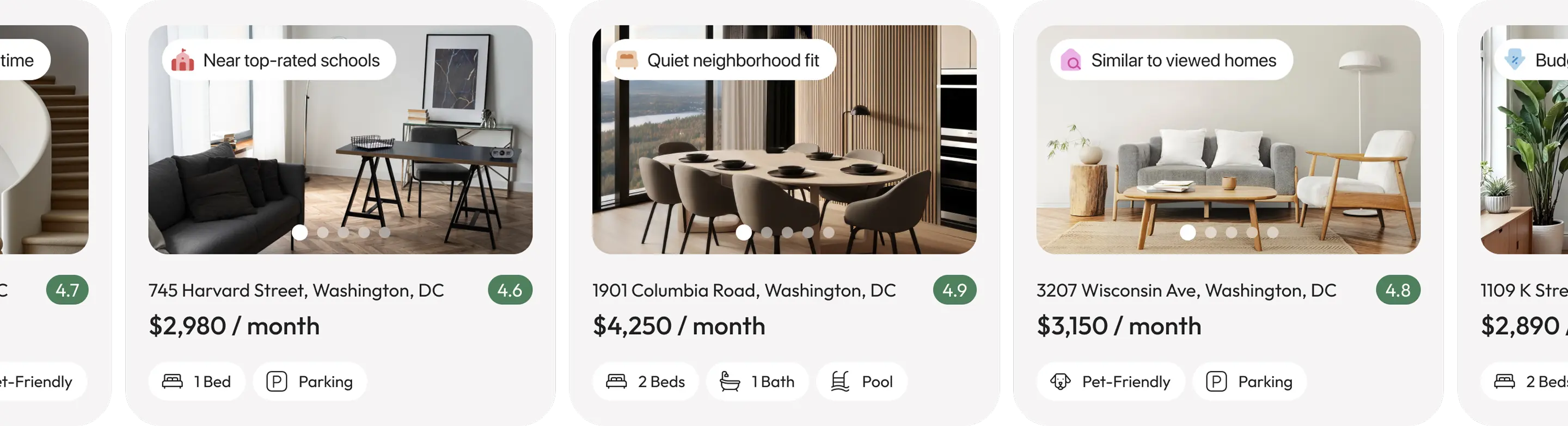 A custom AI engine analyzes individual search behavior and preferences, serving up personalized property matches that increase discovery and reduce time-to-find.