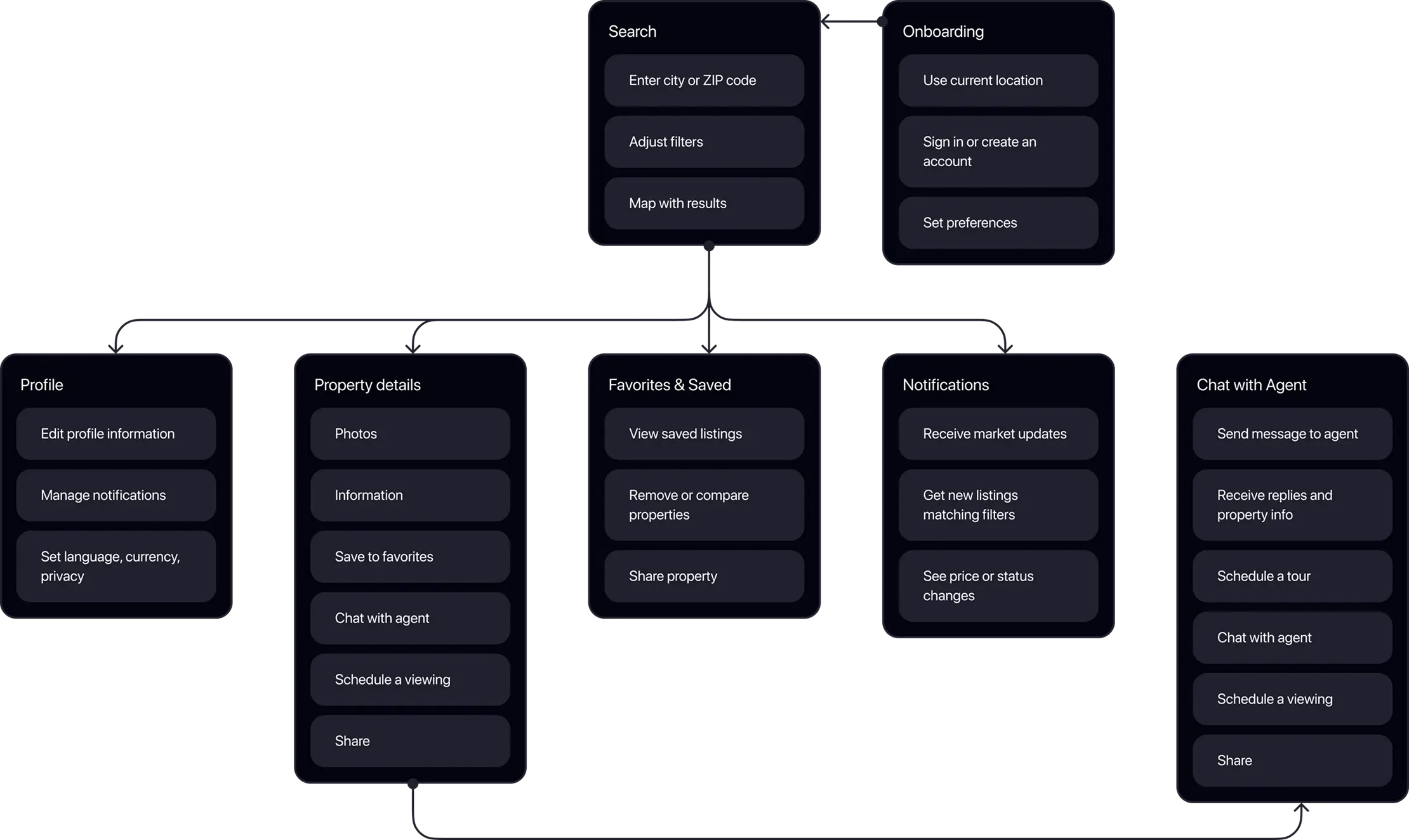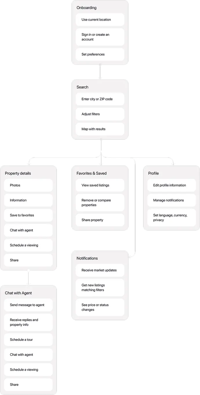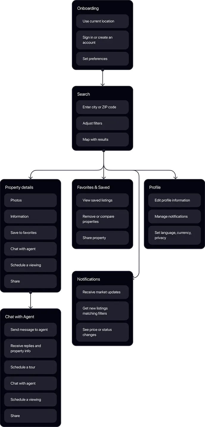 Our client’s vision was to empower prospective buyers and renters to discover homes or apartments through an app designed from the ground up with a mobile-first approach.