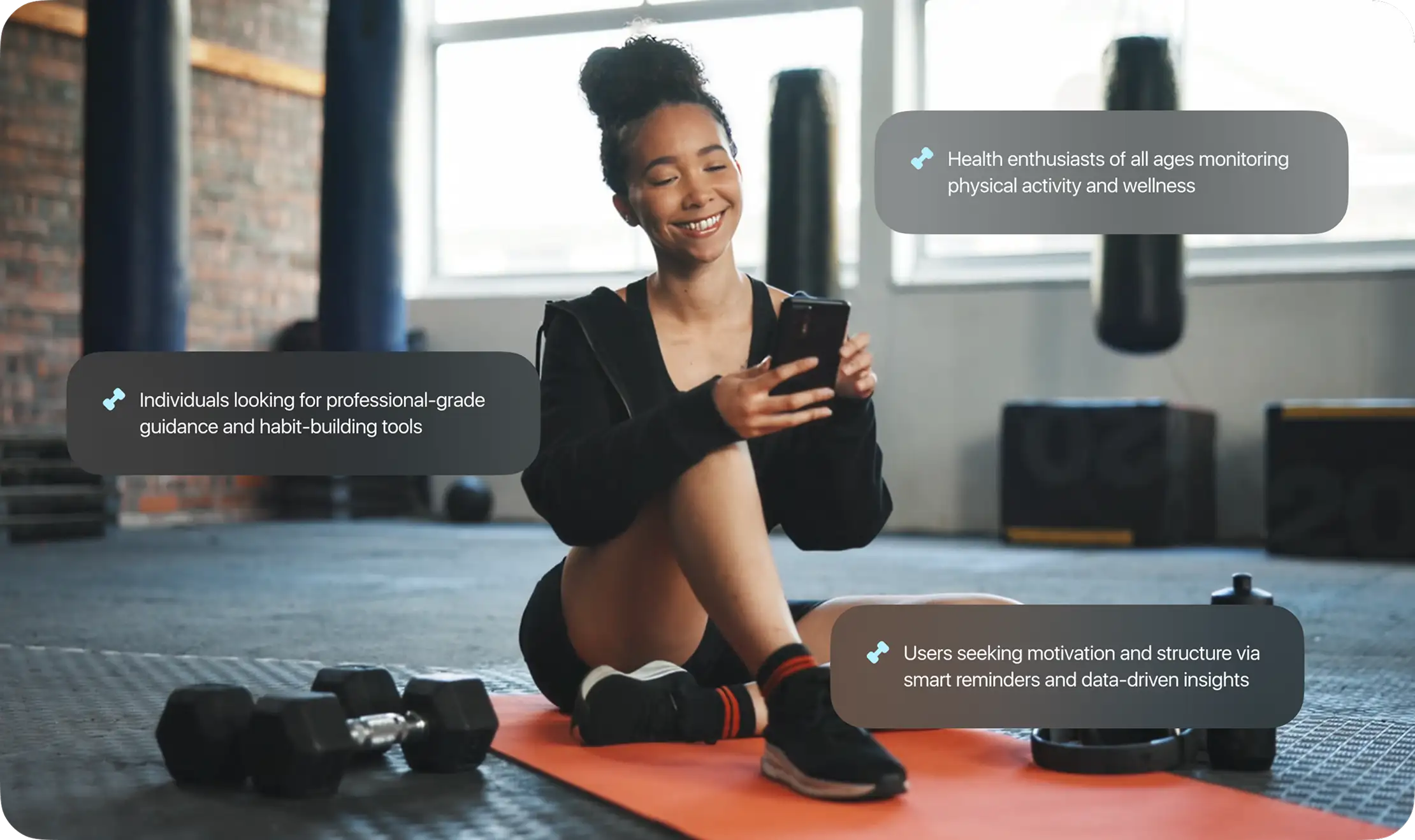 Our client envisioned a fitness app to motivate users and help them track activity, set custom fitness goals, and receive simple, actionable guidance.