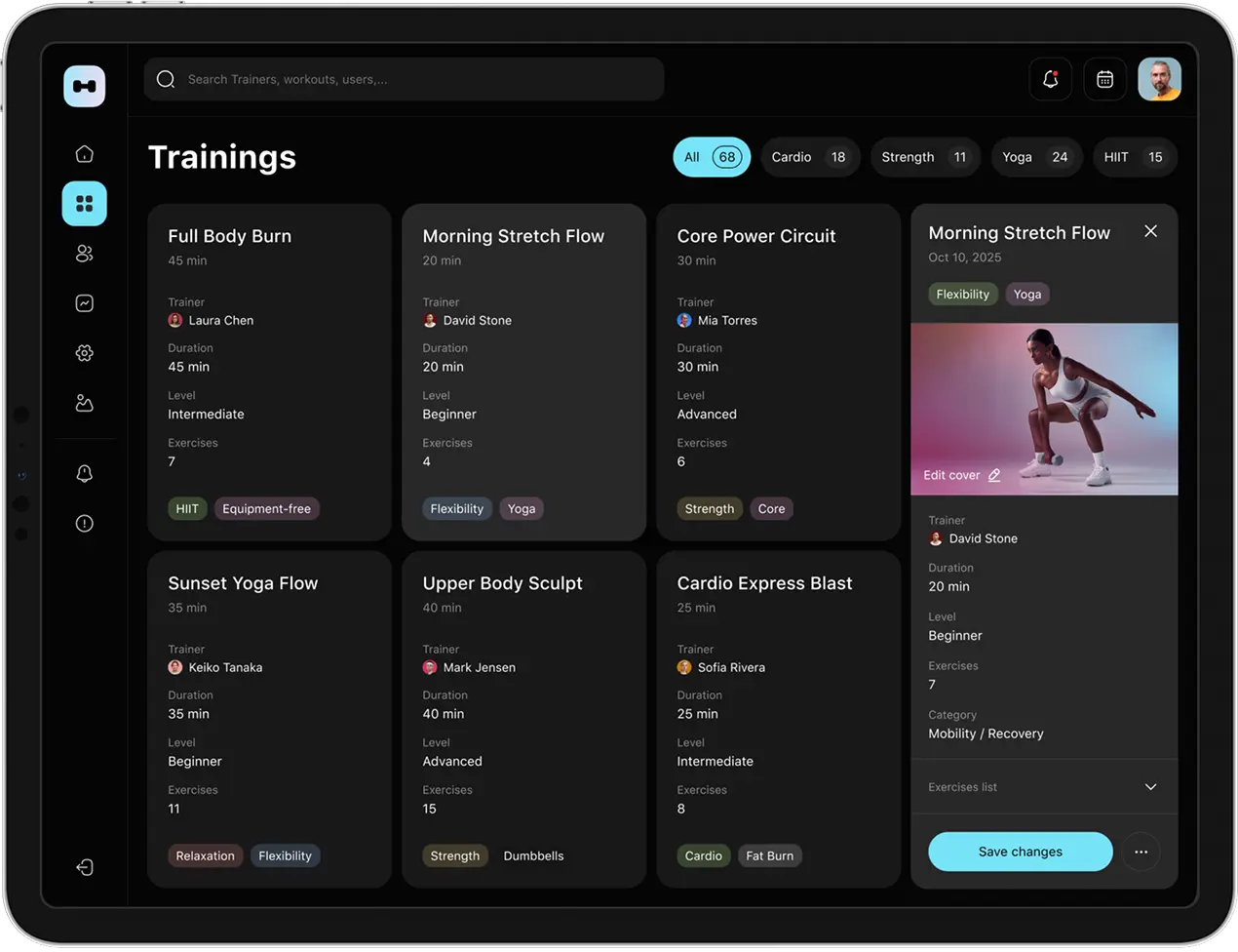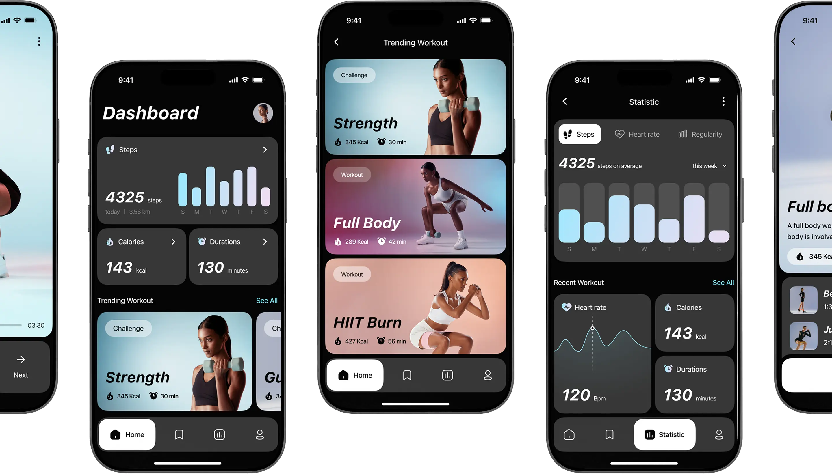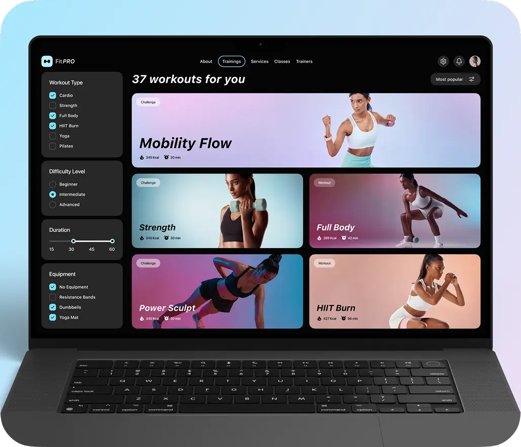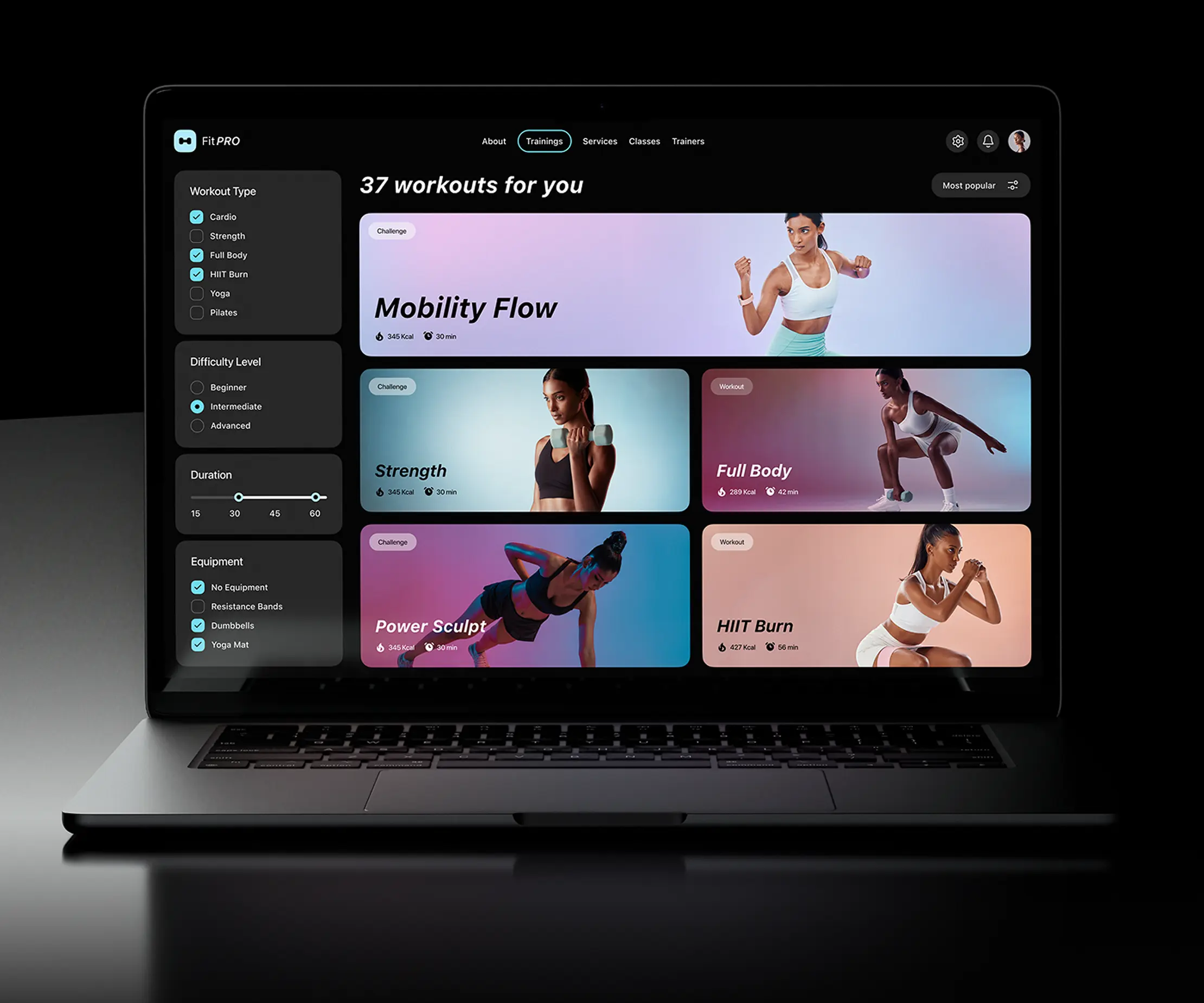 User journeys were optimized for quick access to core features like daily progress, trending workouts, and profile management. Clear separation of dashboards, statistics, and workouts prioritizes usability. The platform’s navigation is optimized for both one-handed mobile use and efficient web browsing.