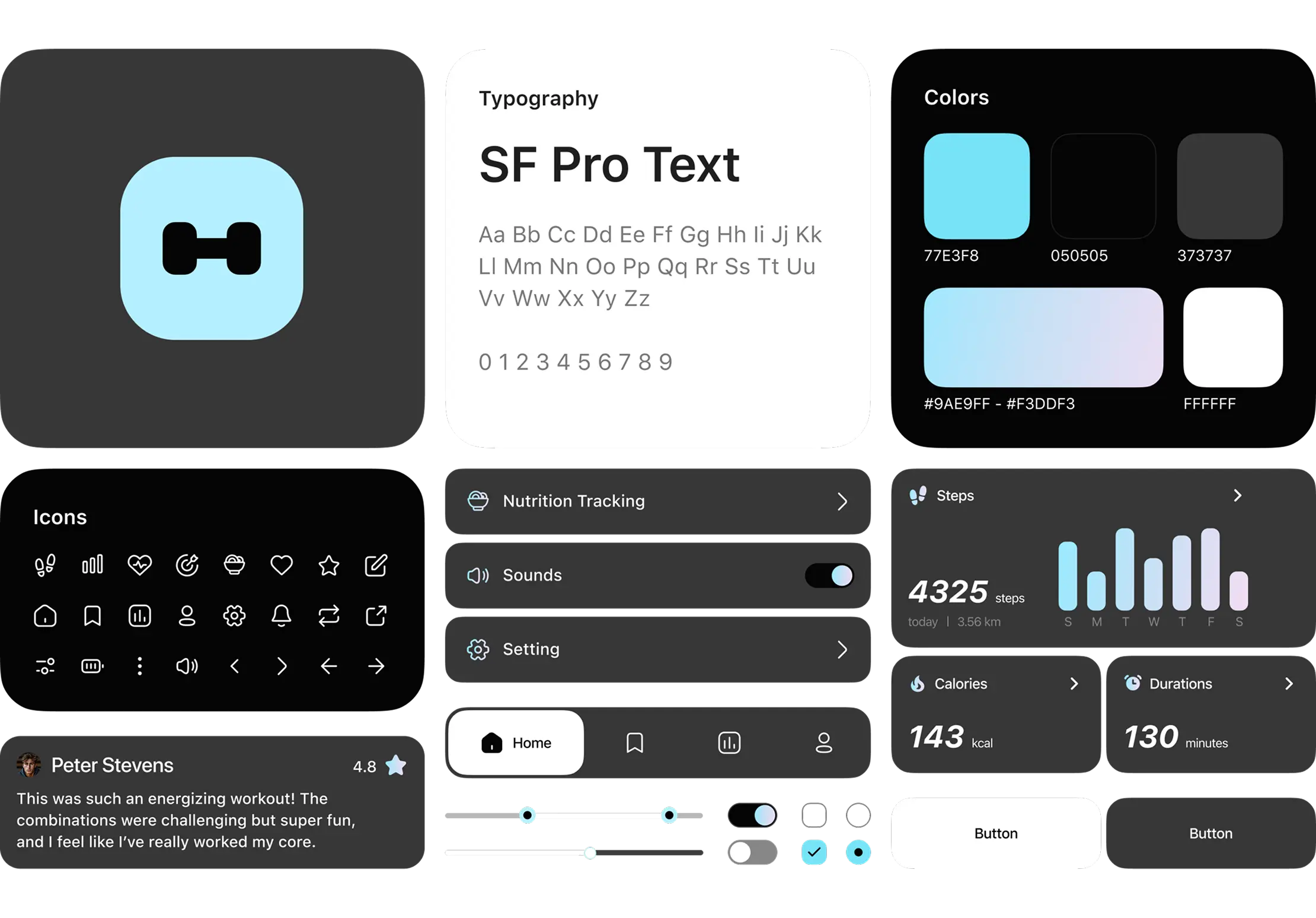 A modular UI kit and icon set allow for easy branding refinements and rapid feature expansion. All backgrounds, gradients, and cards are designed for performance and fast load.