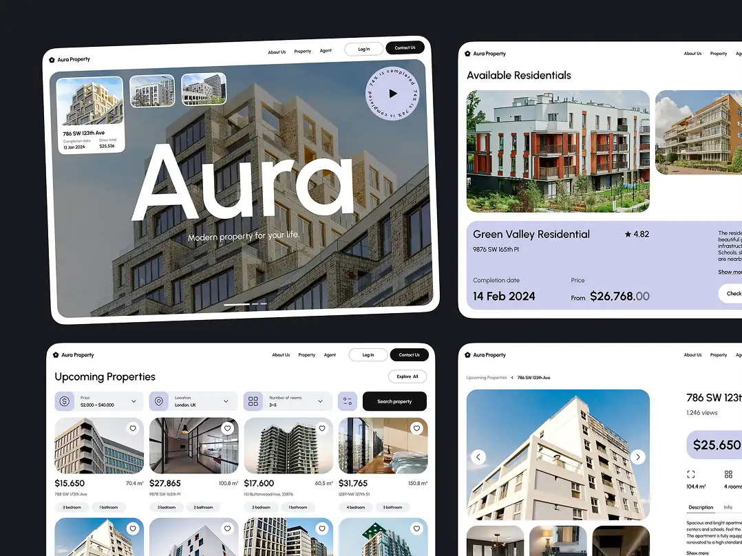 The first impression your brand makes often comes from your agency website or intuitive real estate booking interfaces. It's crucial that these have a clear and professional design. Our team has wide experience in designing interfaces for property management software, real estate listings, agency websites, real estate investment platforms, and more. We eagerly showcase this expertise through our portfolios on Dribbble and Behance.